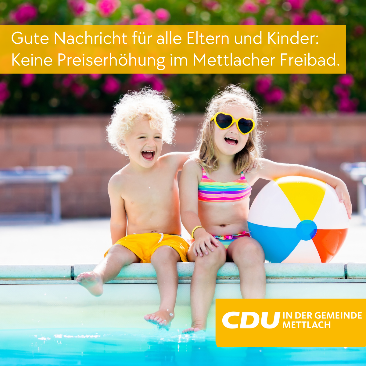 Während die Preise in vielen Lebensbereichen ansteigen, hat sich die CDU in der Gemeinde Mettlach erfolgreich dafür eingesetzt, die Eintrittspreise im Freibad nicht zu erhöhen. Somit können Eltern und Kinder zu den gleichen Eintrittspreisen wie 2019 und zu den gewohnten Öffnungszeiten ab sofort das Freibad in Mettlach besuchen.