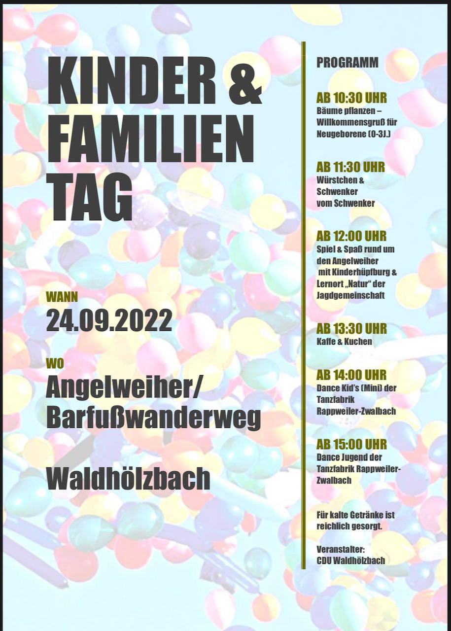 Der CDU Ortsverband Waldhölzbach lädt am 24.09.2022 zum Familienfest ein.
