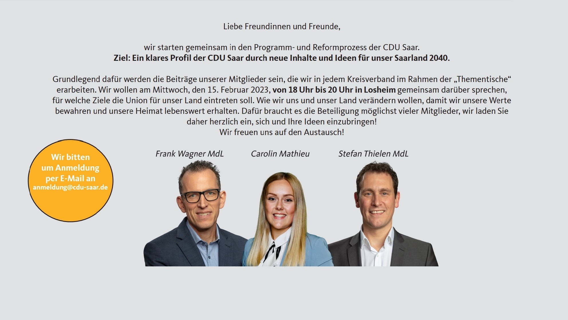 Wir bitten um Anmeldung per E-Mail an anmeldung [at] cdu-saar.de
