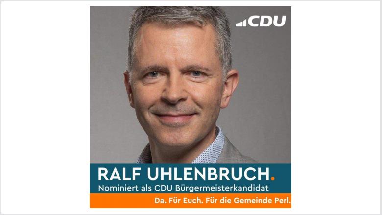 Mit 100% der Stimmen steht Ralf Uhlenbruch für Euch wieder zur Wahl als Kandidat der CDU Perl.