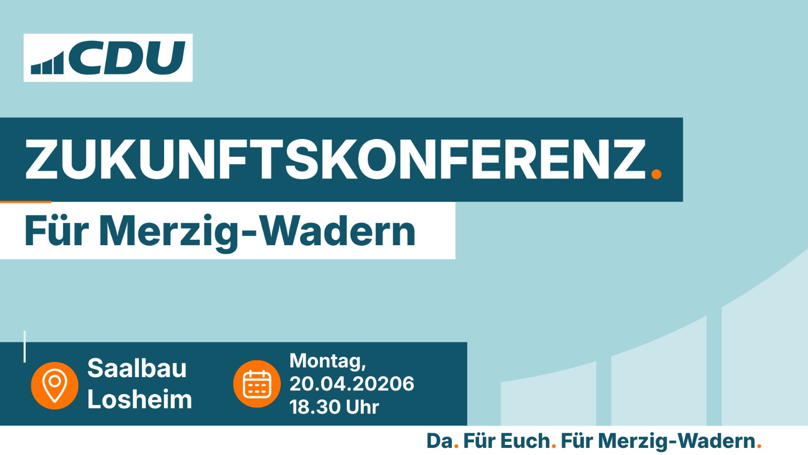 Wir freuen uns auf eine spannende Diskussion. Im Mittelpunkt steht der Austausch mit den Mitgliedern. Sollten Sie terminlich bei der Zukunftskonferenz verhindert sein, finden Sie weitere Termine auf der Website der CDU Saar.